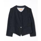 ジャケット ノーカラージャケット パイピング ツイード ライク 金ボタン ジャケット レディース