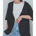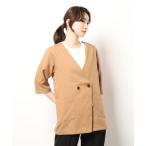 ジャケット ノーカラージャケット リネンタッチノーカラーハーフスリーブジャケット レディース