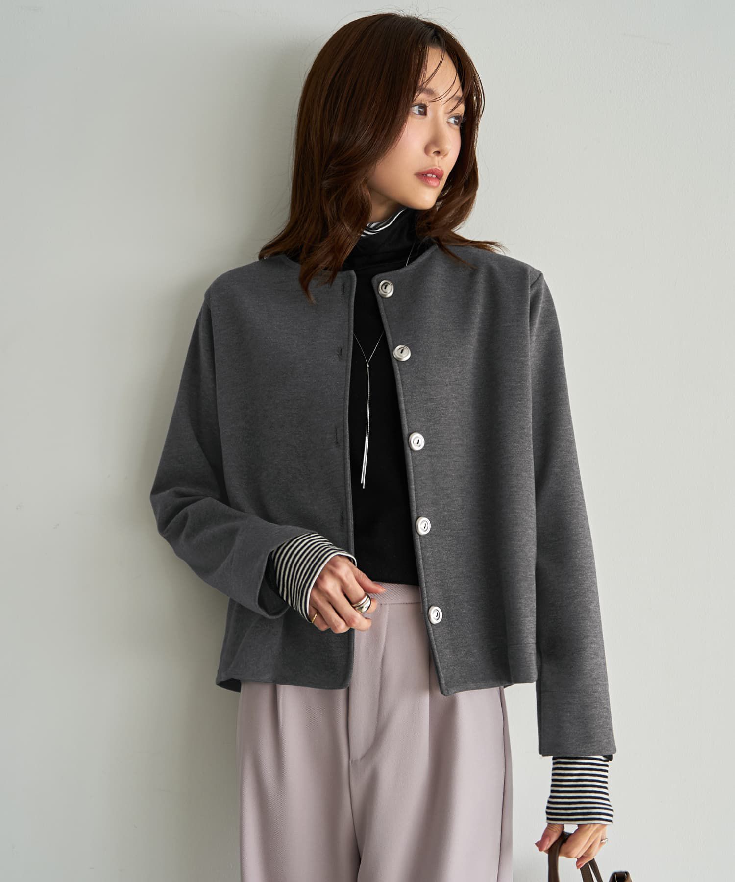 STYLE DELI(スタイルデリ)/メタルボタンの柔らかノーカラージャケット