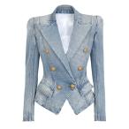 【並行輸入品】レディーススーツブレザー、ボタンドレススーツフォーマルデニムジャケットコートパーティー長袖ウェアワーク,A,L(Bust:92CM