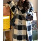 ダウンコート ダウンジャケット 「CANVAS+」ブロックチェック中綿キルティングダブルロングコート レディース