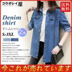 デニムシャツ デニム レディース ス ワークシャツ ヴィンテージ ユーズド加工 アウター 長袖 花柄 ロング 大きいサイズ ジャケット