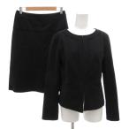 トランスワーク TRANS WORK セットアップ フォーマル ノーカラージャケット フレアスカート ひざ丈 背抜き 40 黒 ブラック /GV