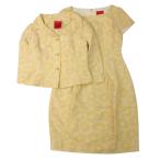 美品 Sybilla シビラ フラワージャガード ワンピース スーツ セットアップ 七分袖 ジャケット 膝丈 花柄 総柄 M 黄 イエロー レディース 古着 中古
