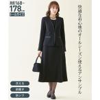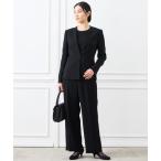 セットアップ 「喪服・礼服」ウォッシャブル ノーカラーVネックジャケット・七分袖ブラウス・センタープレスワイドストレートパンツ 3点セット ブラックフ