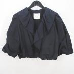 ランバン LANVIN ジャケット 七分袖 ギャザー 42 ネイビー 紺系 リネン コットン フランス製 レディース