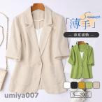 スーツジャケット レディース 春夏 綿麻 七分袖 ブレザー リネンスーツ 薄手 カジュアル テーラード ジャケット 大きいサイズ 着痩せ 通勤 オシャレ30代 40代