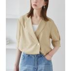 Unpeu Femme / アンプーファム リネンレーヨンノーカラー七分袖 ジャケット