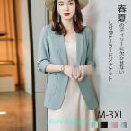 サマージャケット レディース テーラードジャケット スーツ 七分袖 薄手 着痩せ カジュアル 上着 アウター 通勤 オフィス OL ママ 夏 無地