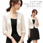 サマージャケット 通勤 OL オフィス カジュアル 綿麻ジャケット リネン 七分袖 レディース ビジネス 薄手 着痩せ 夏