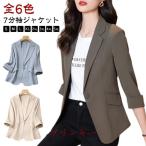 全6色 ジャケット OL フォーマル テーラードジャケット 七分袖 レディース 薄手 カジュアル サマージャケット 綿麻調 UVカット スーツ 春夏