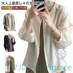 ゆったり ブルゾン レディース 夏 春 シアー ノーカラーアウター カーディガン ジャケット UV 羽織り ボレロ 七分袖 ライトアウター 冷房対策