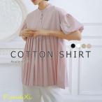 シャツ レディース 夏 薄手 羽織り おしゃれ スタンドカラー コットン 綿 半袖 五分袖 プリーツ ブラウス 白シャツ バンドカラー ヘンリーネック 立ち襟