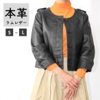 レザージャケット ノーカラー 七分袖 革ジャン レディース 秋 本革 羊革 ラムレザー L1031