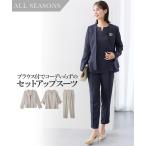 スーツ レディース ドビー素材タックノーカラー ジャケット パンツ 3点セット + 七分袖 フレア袖 ブラウス +テーパード 春 秋 | 4L/5L | ニッセン nissen