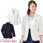 【ジャケット】【ハネクトーン HANECTONE ジャケット(裏なし)-5〜17 WP159】女性用 レディス 受付 サービス 接客 レセプション エステ 手洗いOK ストレッチ 防汚加工 吸汗速乾 七分袖 袖口リターン可 ブラック ホワイト【カウンタービズ Counter Biz】