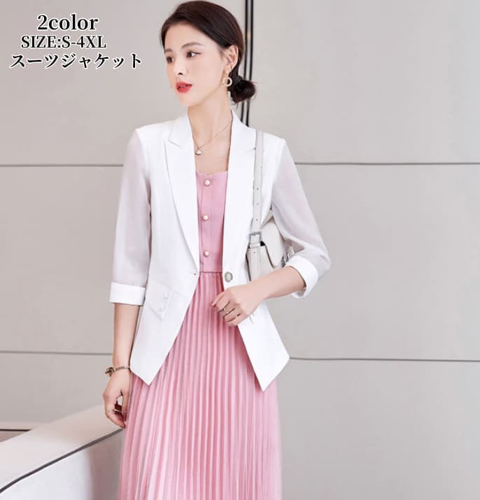 ジャケット レディース 春夏 サマージャケット 七分袖 カジュアル サマー ジャケット 上品 シンプル 黒 白 ブラック ホワイト フォーマル オフィス OL 通勤 美しいライン 通気性 春秋 4COLOR M/L/XL/2XL/3XL 30代 40代 50代 送料無料