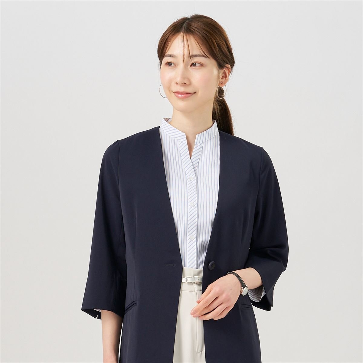 【SALE/22%OFF】BRICK HOUSE by Tokyo Shirts ジャケット ノーカラー 七分袖 ネイビー レディース BL13I100DH20X00-20 トーキョーシャツ ジャケット・アウター ノーカラージャケット ネイビー【送料無料】