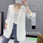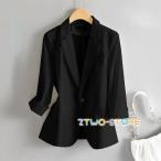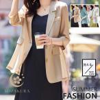 サマージャケット レディース テーラードジャケット スーツ 七分袖 薄手 着痩せ カジュアル 上着 アウター 通勤 オフィス OL ママ 夏 無地