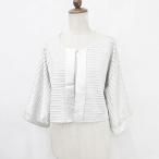 ピサーノ PISANO ノーカラージャケット パーティー 七分袖 ボーダー グレー LL レディース