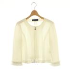 エムズグレイシー M'S GRACY カメリアジップ サマージャケット 七分袖 ノーカラー 38 白 ホワイト /AT ■OS レディース