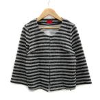 エル ELLE ノーカラージャケット 七分袖 ショート丈 ボーダー柄 ウール混 38 グレー /MS19 ■MO レディース
