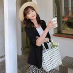 青 夏 シンプル レディース 日除け 薄手 七分袖 アウター 羽織り キレイめ テーラードジャケット ショート丈 OL オフィス カジュアル 春 白 黒 サマージャケット