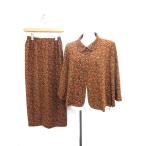 シセンドウ 詩仙堂 HITOSHI TAMURA セットアップ 上下 花柄 ちりめん ジャケット 七分袖 ロング スカート 茶 レディース中古 【ベクトル