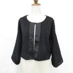 ピサーノ PISANO ノーカラージャケット パーティー 七分袖 ボーダー 黒 ブラック LL レディース