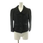 リナシメント テーラードジャケット シングルボタン 総裏地 XS 黒 ブラック 七分袖 パイピングデザイン ショート丈 ■GY61 レディース