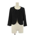 ストロベリーフィールズ STRAWBERRY-FIELDS ノーカラージャケット 上着 黒 ブラック 七分袖 ツイード調 /LP ■GY60 レディース