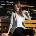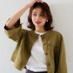 リネン ジャケット 七分袖 テーラード オフィス ショート丈 春夏 スリム シングルボタン 通勤