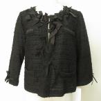 #anc インゲボルグ INGEBORG ジャケット 9 黒 ノーカラー リボン ラメ 七分袖 薄手 レディース [958194]