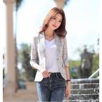 サマージャケット レディース テーラードジャケット 夏 春夏ジャケット 七分袖 大きいサイズ チェック柄 ロールアップ カジュアル 韓国