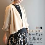 ジャケカーデ ジャケット ブラウス風 カーデ カーディガン 七分袖 羽織り 異素材 オフィス 上品 通勤 袖口ボタン