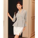 ドレス ダブルボタンペプラム七分袖ジャケット&タイトワンピースセットアップ