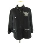 バレンザ VALENZA ジャケット 七分袖 薄手 ジップアップ ラインストーン 刺繍 黒 42 *T258 レディース