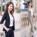 パンツスーツ レディース 五分袖 七分袖 セレモニースーツ 夏ビジネススーツ 夏オフィススーツ ジャケット パンツ 制服 スーツセット パンツセット 2点セット