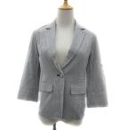 インタープラネット Beauty テーラードジャケット 八分袖 ミドル丈 シングルボタン ストライプ柄 40 L グレー 白 ホワイト レディース
