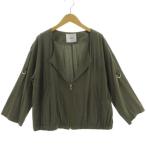 アンデミュウ Andemiu ジャケット ノーカラー 七分袖 袖ロールアップ ジップアップ カーキ M レディース