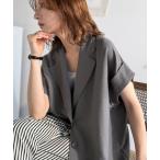 ジャケット テーラードジャケット ゆるっと着こなす。とろみ質感袖ロールアップシングルテーラードジャケット(半袖) レディース
