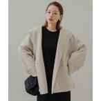 ジャケット ノーカラージャケット ノーカラーボアジャケット レディース