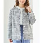 ジャケット ノーカラージャケット パイピング ツイード ライク 金ボタン ジャケット レディース