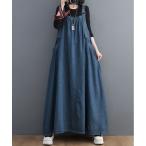 ジャンパースカート ポケット付きオーバーサイズデニムジャンスカ