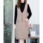 ジャンパースカート ハーフジップ ジャンパースカート Vネック ノースリーブ ワンピース