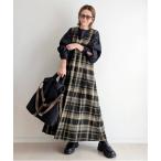 ジャンパースカート チェック柄 裾マーメイド切替 ロングジャンスカ ワンピース