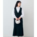 ジャンパースカート 「Eclat one」深めVネック 起毛ツイル ストレートシルエット ジャンパースカート