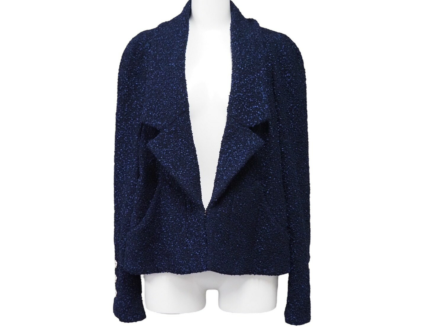 CHANEL シャネル ツイードジャケット P53945V38337 ナイロン ポリエステル コットン ブルー シルバー金具 サイズ38 美品 中古 47233