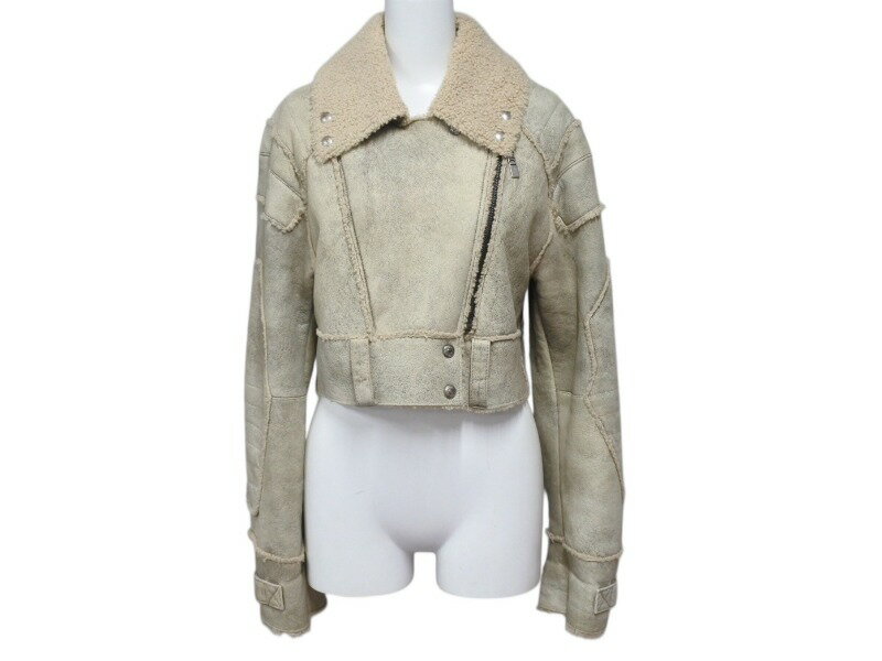 極美品 CHRISTIAN DIOR クリスチャンディオール ムートンジャケット 4A20127070 ラムスキン カーキ ベージュ サイズ36 中古 4b001960