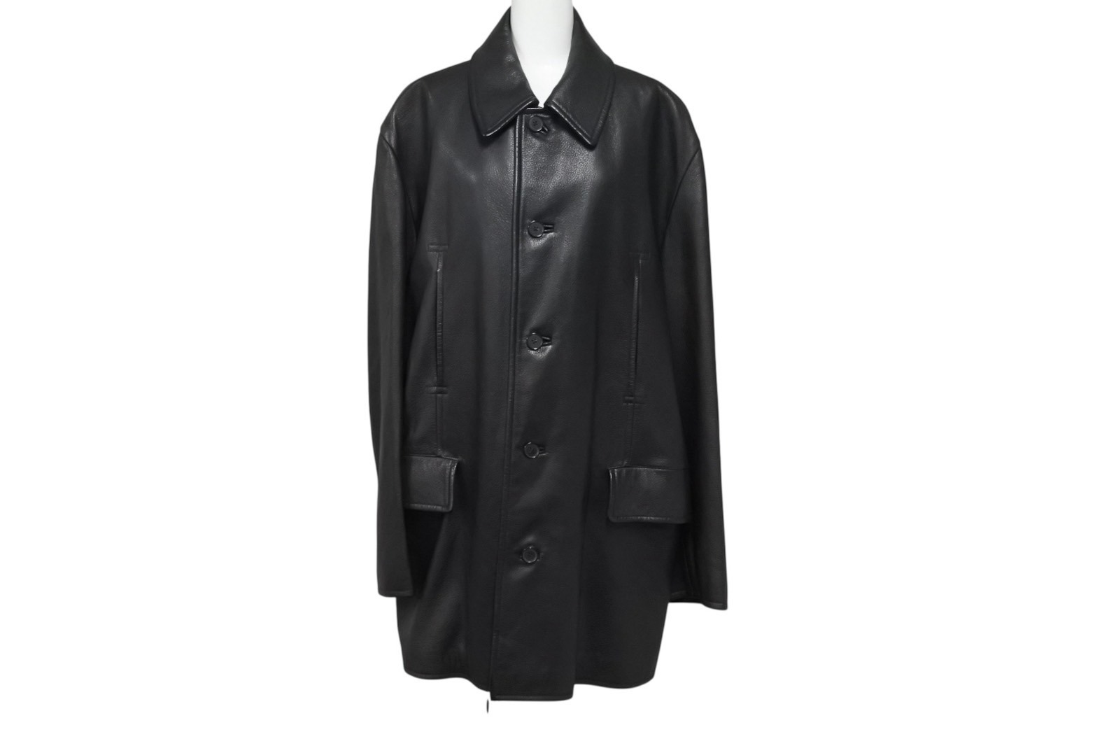 HERMES エルメス レザーコート ブラック フランス製 牛革レザー レーヨン サイズ52 美品 中古 4b006342